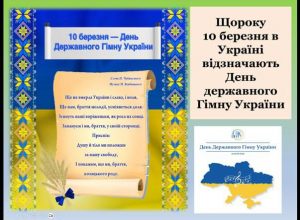 З метою виховання патріотизму, поваги до державних символів та поглиблення знань про історію створення Державного Гімну України 10.03.2026 року з учнями 15 групи було проведено вікторину «Гімн – серце України» (присвячена Дню Державного Гімну України – 10 березня).